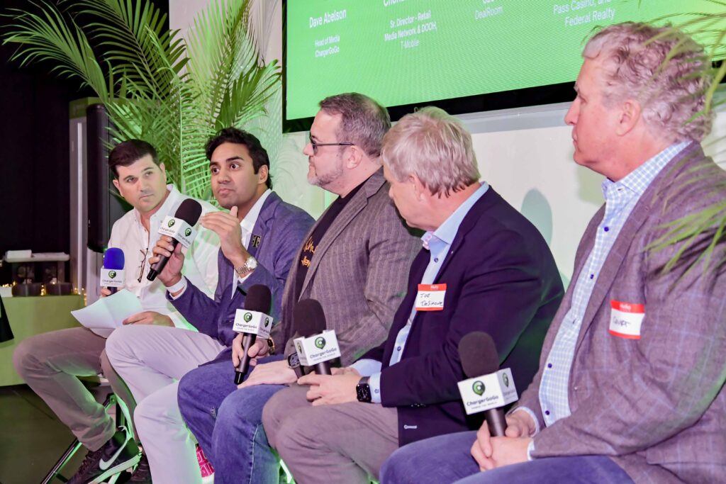 From left to right: Dave Abelson (ChargerGoGo), Cherian Thomas (T-Mobile), Kyle Kane (DealRoom), Joseph DeSimone (Railroad Pass Casino, Pass Casino, and First Federal Realty), Court Shannon (TouchTunes)