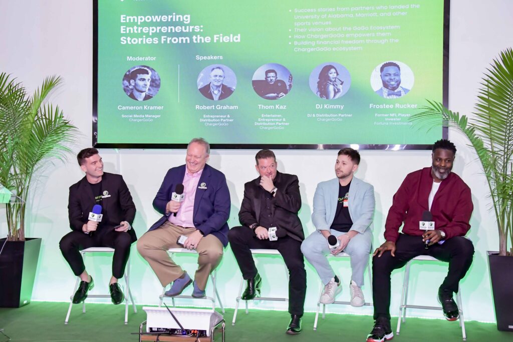 From left to right: Cameron Kramer (ChargerGoGo), Robert Graham (ChargerGoGo distribution partner), Thom Kaz (ChargerGoGo distribution partner), Dylan Goldstein (ChargerGoGo distribution partner), and Frostee Rucker (Fortuna Investments and ChargerGoGo distribution partner)